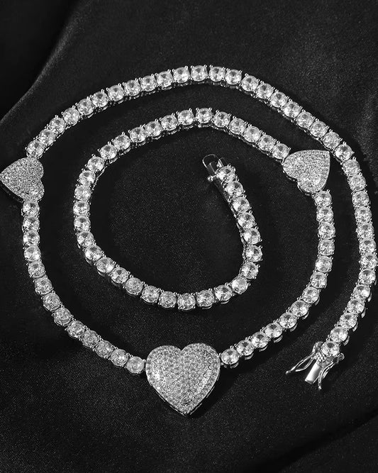 Triple Heart Tennis Necklace