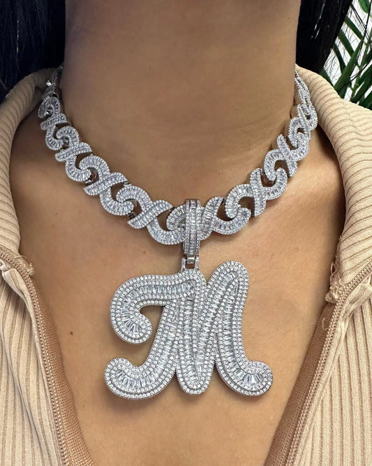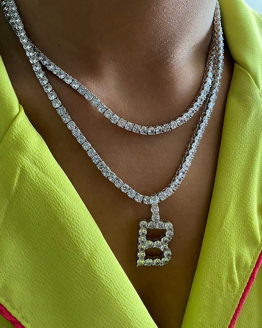 Baguette Bling Letter Necklace