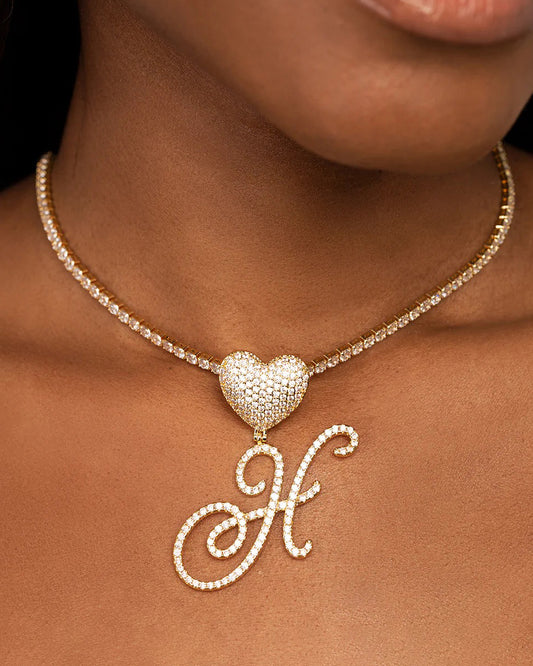 LOVE LETTER SET – Heart Initial Pendant x Cuban Chain