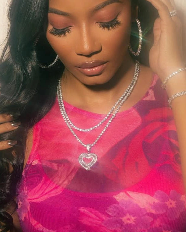 Make a statement with the Baguette Heart Pendant. Designed with precision-cut baguette stones and a radiant heart shape, this piece adds a touch of luxury to any outfit.