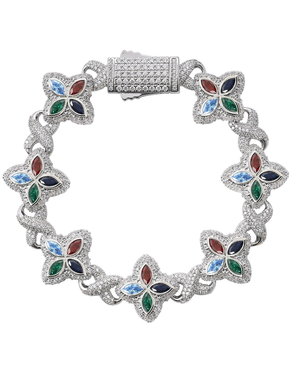 Don’t let the charm fool you — the Royal Drip Four Leaf Bracelet brings all the luck with none of the subtlety. Drenched in multicolor stones and built on a bold link chain, this piece is for the ones who know their shine is no accident.
